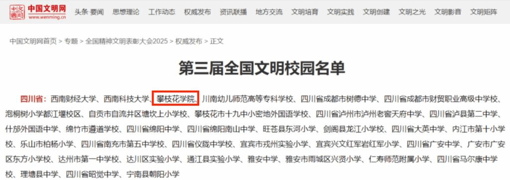 5月23 日,在学校正在迎接教育部本科教育教学审核评估之际,中国文明网正式发布了全国文明校园名单,攀枝花学院正式获评全国文明校园。
