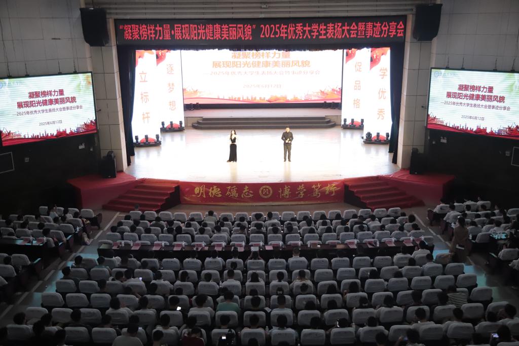 为深化优良学风建设,充分发挥榜样引领作用,营造“树典型、立榜样、追卓越”的浓厚育人氛围,6月12日下午,我校在阳光会堂举行“凝聚榜样力量 展现阳光健康美丽风貌”2025年学生表扬大会暨优秀大学生事迹分享会。党委常委、副校长朱云生出席会议,宣传部、学工部、教务处、招就处、团委等相关部门负责人,各学院分管学生工作领导、学生科长、辅导员代表以及学生代表共计800余名师生参加会议。
