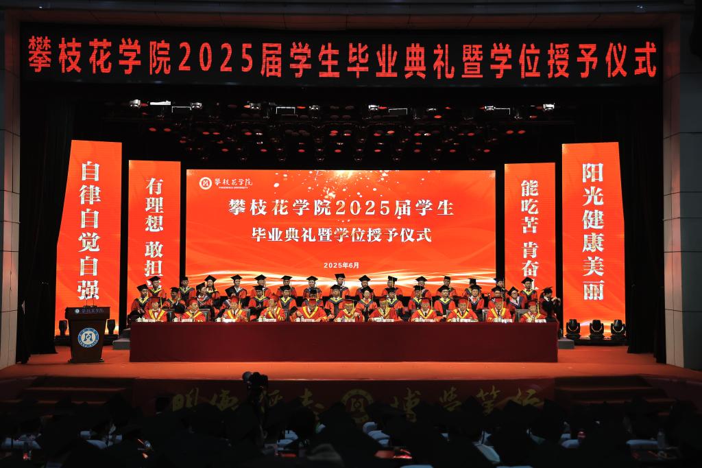 典礼上,党委副书记、校长李兴贵宣读《攀枝花学院学位评定委员会关于2025届本科毕业生的授位决议》;党委副书记刘立新宣读《四川省教育厅关于公布2025届四川省优秀大学毕业生认定结果的通知》;副校长石维富宣读《关于聘任彭德才等114名同学担任攀枝花学院2025届毕业生校友联络员的决定》。