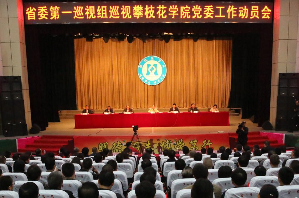 根据省委的统一部署,省委第一巡视组从10月24日开始进驻我校,开展为期一个月左右的巡视工作。24日上午,我校在会堂召开省委第一巡视组巡视攀枝花学院党委工作动员会。省委第一巡视组组长秦刚,省委巡视办公室副主任陈宗德,省委教育工委副书记、教育厅党组成员李光华,巡视组副组长裴勇、唐峭雪及省委巡视办巡察处负责同志、巡视组成员出席大会。我校党委领导班子全体成员,全校副高以上教职工、副县级以上干部、附属医院领导班子成员、教师和离退休人员代表406人参加会议。会议由校党委副书记、校长王曙光主持。