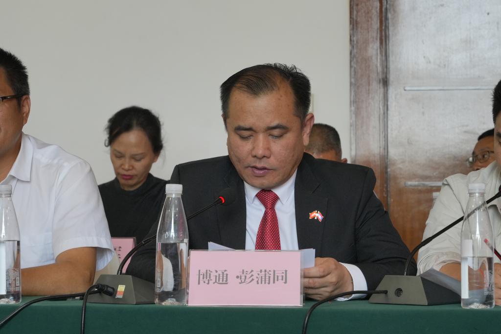 博通・彭蒲同代表老挝驻昆明总领事馆,对老挝校友分会及艺术学院、电气学院云南校友分会的成立表示衷心的祝贺,并向攀枝花学院为老中教育合作以及为两国培养新一代人才所做出的重要贡献表示崇高的敬意。他指出,老挝和中国是山水相连的友好邻邦,是休戚与共的命运共同体,两国在经济、文化和教育领域的合作日益紧密,取得了丰硕的成果。他强调老挝驻昆明总领事馆将持续支持校际合作,担任好攀枝花学院与老挝高校之间合作的协调员,为校友在老挝发展提供便利,推动更多老挝留学生赴攀枝花学院学习深造。他相信,在老中两国合作与友谊的基础上,老挝校友分会将成为两国教育和文化合作的坚实纽带。