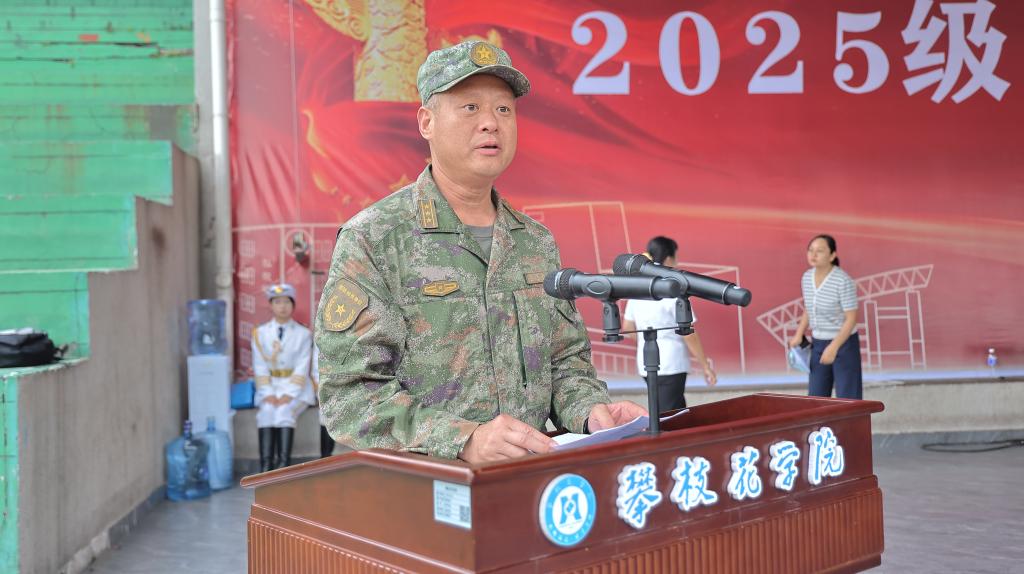 军训指导单位、东区人武部上校部长康贺卫向圆满完成军训任务的全体新生表示祝贺,对学校深化军地协同、推进国防教育的系列举措给予高度评价。他表示人武部将一如既往地支持学校的建设发展,共同做好国防教育和人才培养工作。他希望全体学员将爱国情怀、国防意识根植于魂,深刻理解“国无防不立,民无防不安”的道理,自觉担当起新时代青年应有的责任。