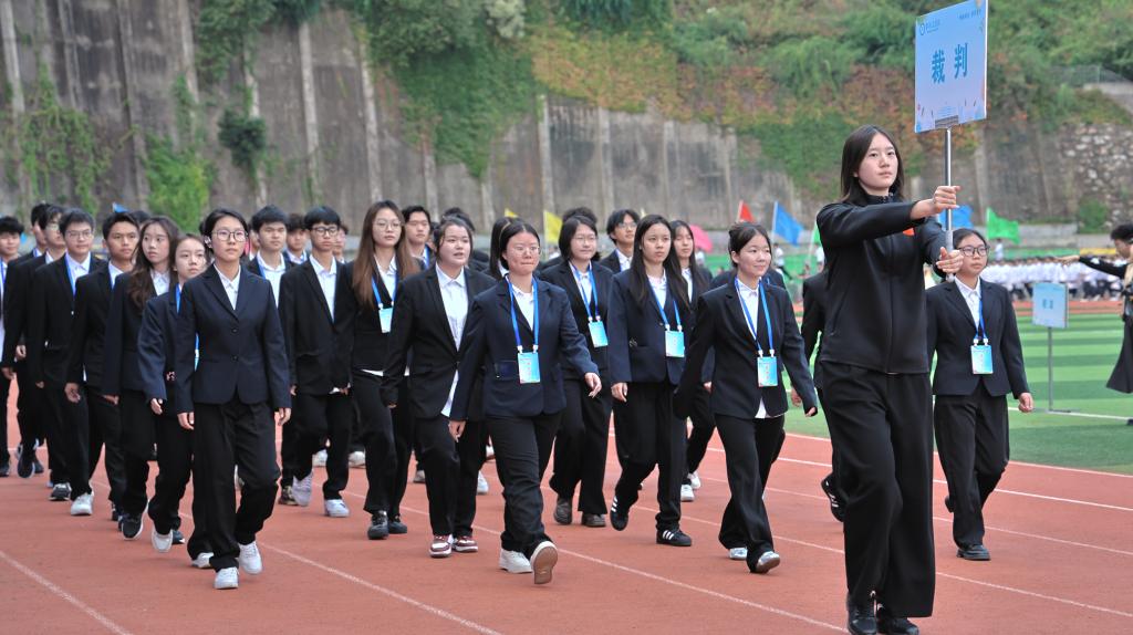 冬日暖阳洒金辉,激越的《运动员进行曲》奏响,裁判方队、校友方队、研究生方队、留学生方队、各分工会教工方队与二级学院学生方队,精神抖擞、步伐铿锵,列队入场。他们步履挺拔、目光坚毅,依次经过主席台,用创意十足的表演,生动呈现校园的青春活力与健康向上的风采。