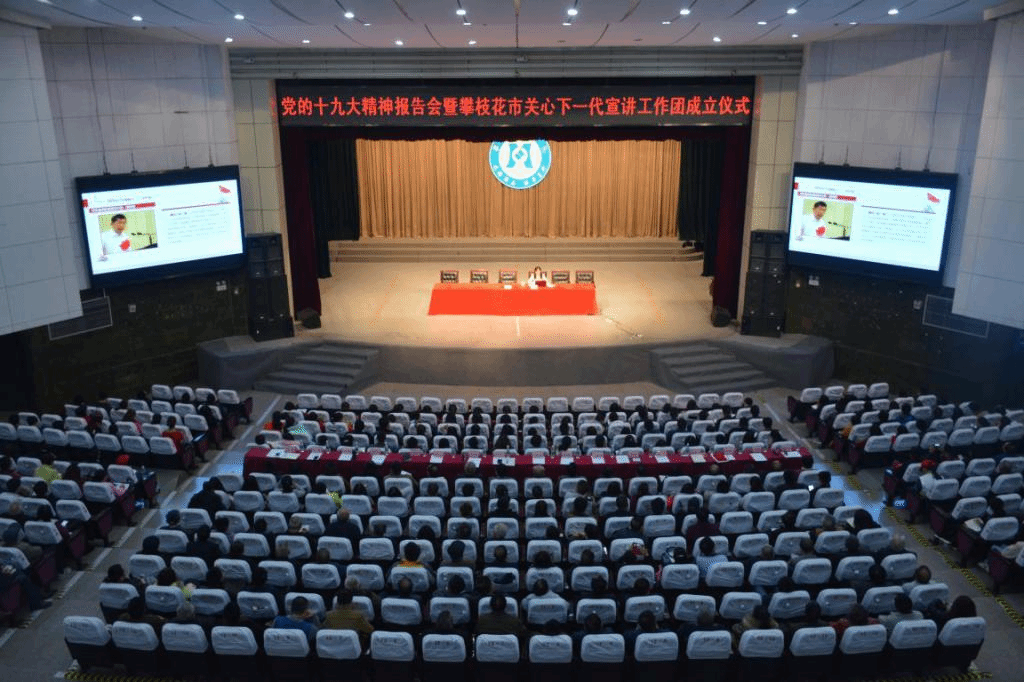 12月12日上午,党的十九大精神报告会暨攀枝花市关心下一代宣讲工作团成立仪式在我校会堂举行。市关工委执行主任谢道全,常务副主任张彦博、张国民、杨长云,团市委书记任文,我校关工委老同志代表及500余名学生参会。