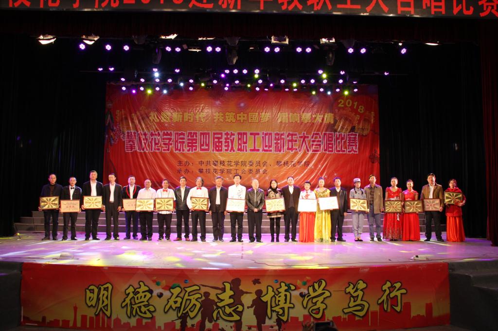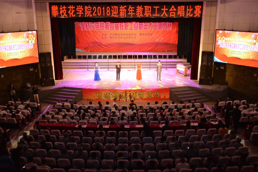 为庆祝党的十九大,喜迎新时代,开启新征程,担当新使命,12月29日下午,我校在会堂举行以“礼赞新时代 共筑中国梦 唱响攀大情”为主题的2018迎新年教职工大合唱比赛。各二级学院及机关部门共同组成的15支队伍参与比赛,校领导和各参赛人员及师生代表千余人观看了比赛。