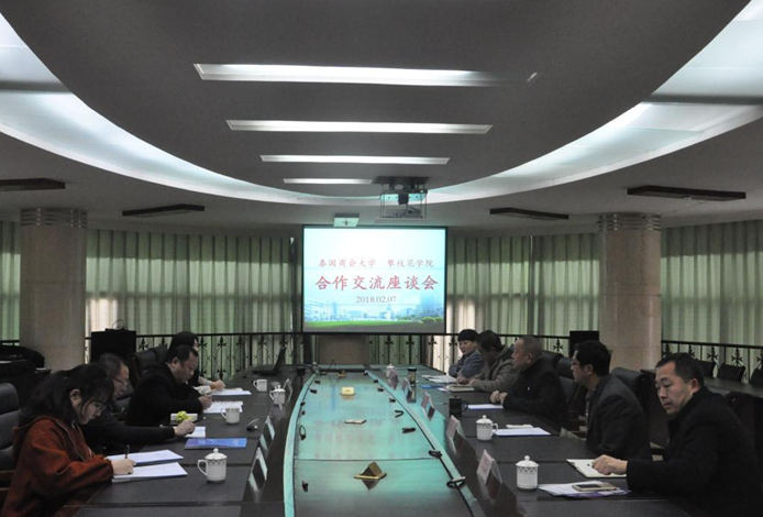 会议重点讨论了泰国商会大学专升本(硕)、本升硕、集中授课在职人员教学班、学生实习实践、我校学生赴泰游学、选派教师赴泰授课及师资培训等项目的合作和实施事宜。会议还就如何推动全面深度交流合作,促进教育资源优化整合进行了构想说明。