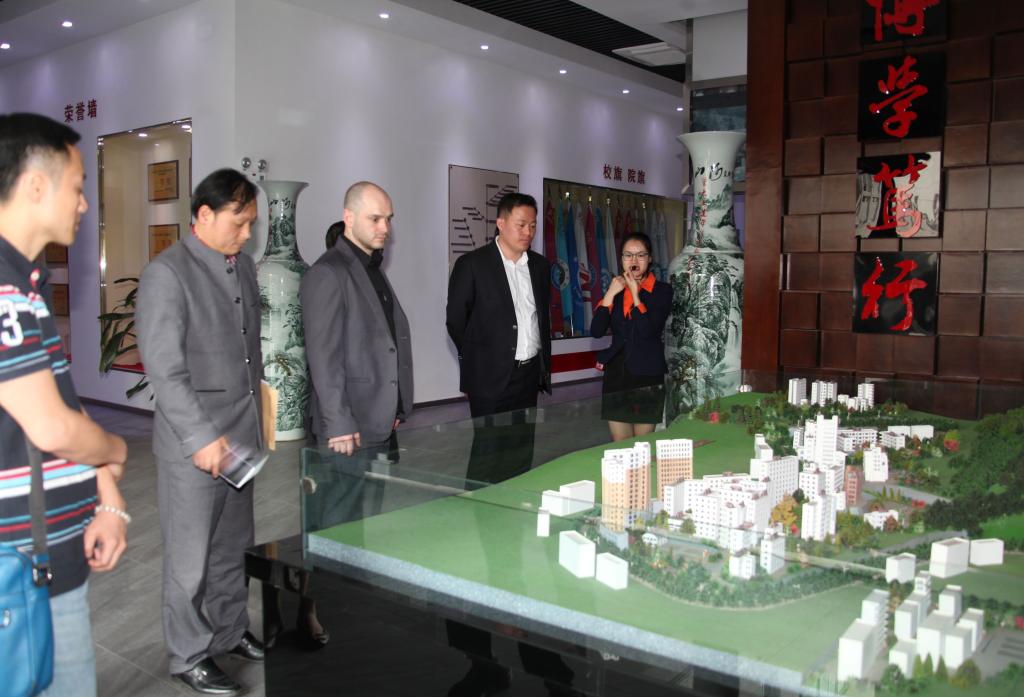 中国对外友好合作服务中心人才交流部部长张琳曦(右二)一行参观校史馆