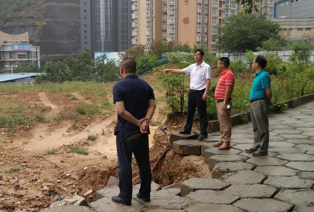肖立军一行先后查看了西苑校区的大门、堡坎、足球场以及正在修建的医学实验教学中心、科技大楼等地。看到部分堡坎垮塌、山体出现滑坡,肖立军强调,立即启动应急预案,全面检查评估校园地质状况,及时排查安全隐患点;立即组织人员,对毁损设施、场地及时组织修复和清理;防汛抢险期间,实行24小时值班巡查制度,全力确保师生生命安全,全力确保校园设施设备安全,让师生度过一个愉快的暑假。