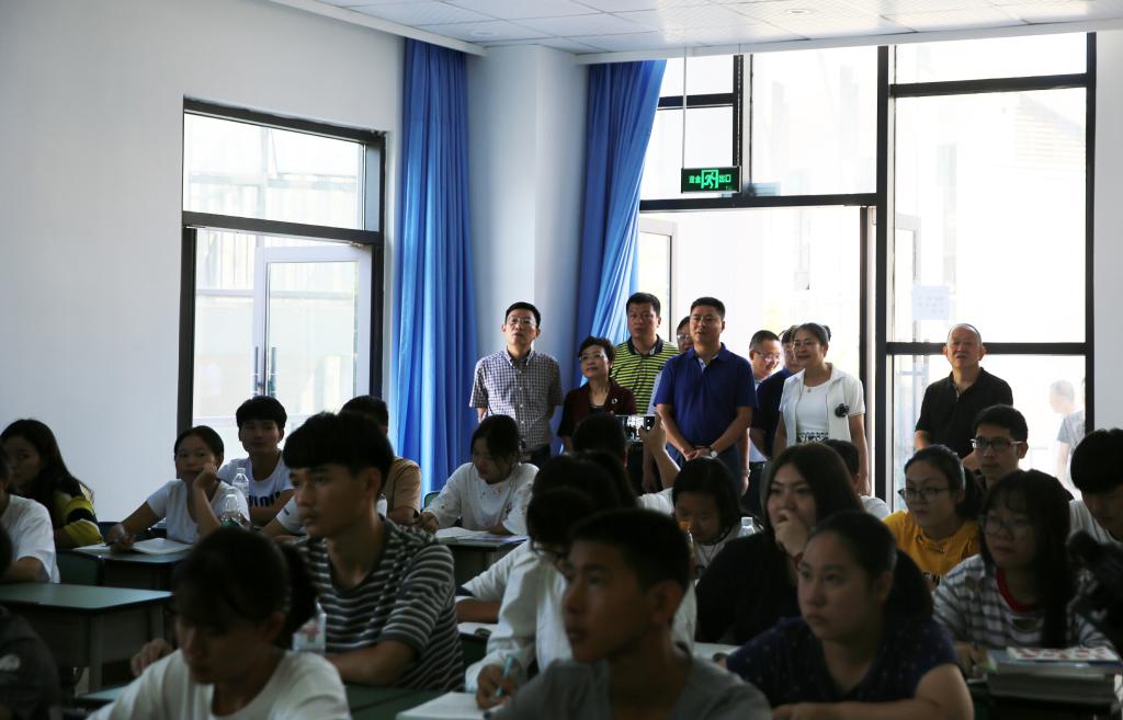 | 市委副书记虞平(后排中)一行察看康养学院学生上课情况 |