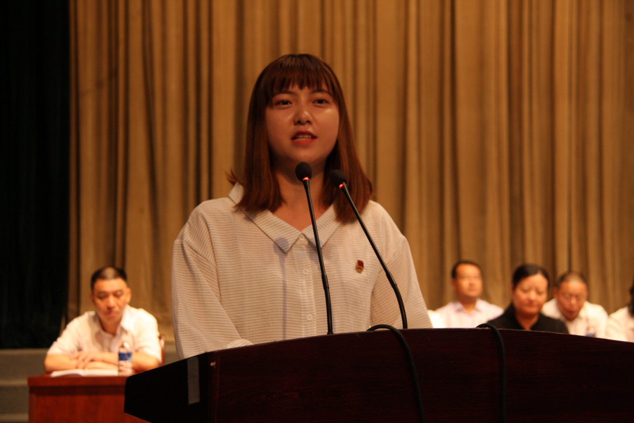经管学院物流管理本科专业的王琪作为老生代表发言。她鼓励新生要制定计划,脚踏实地,勇往直前;要培养兴趣,挖掘潜力,锻炼能力;要主动融入校园生活,借助更多平台,施展个人才华。