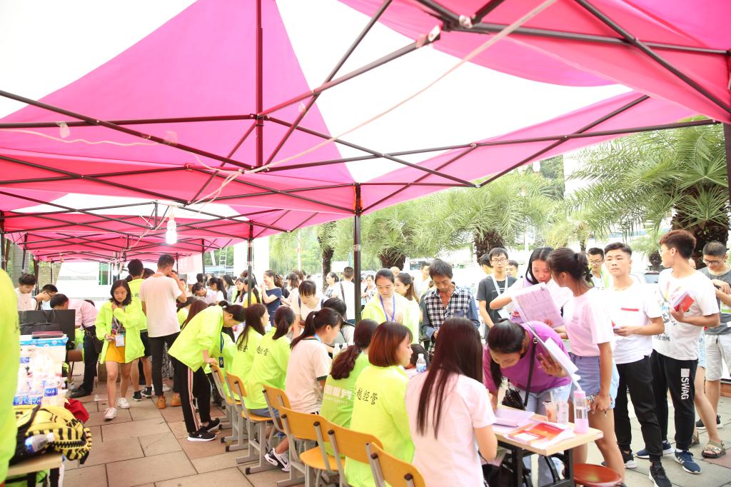 今年学校在校内主要路口和密地大桥设立了10个迎新咨询点,来自26个省、自治区、直辖市的4000多名新生要奔赴三个校区报到,从火车站到学校,从检录到缴费,从报到现场到公寓,均迅速快捷、安全周详。同时,学校为更好的掌握新生报到情况,今年优化了迎新系统,通过电视和网络实时掌握新生报到入校情况,方便各二级学院核实新生报到情况,了解未报到新生情况,整个迎新报到现场井然有序。白昼里,比阳光更热情的是学长学姐的引导和服务,深夜里,比暴雨来得更快的是一双双有力的援手,即使迎新期间天气情况多变,但是报到现场依旧有条不紊、紧张有序。