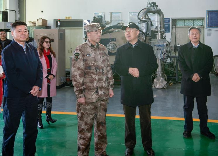 随后,姜永申司令员一行参观了我校钒钛材料中试基地,他充分肯定了我校坚持“立德树人、产教融合、应用为先”的办学理念,扎实推进应用型一流大学建设方面取得的成绩,对学校植根地方、校地相融、产教融合、转型发展方面给予了高度评价,希望学校和专家们继续努力,为加快建设美丽繁荣和谐四川做出新的更大贡献。