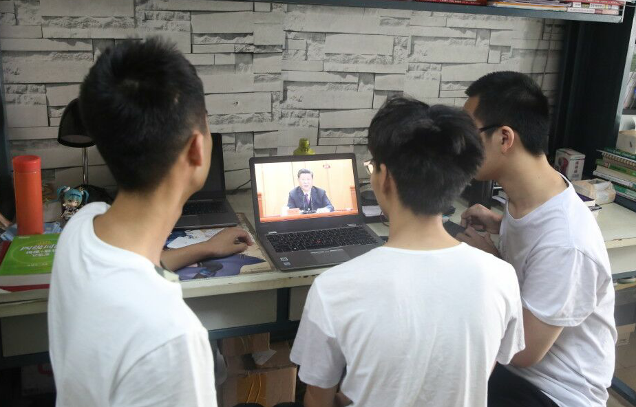 | 学生在宿舍自发收看大会直播 |