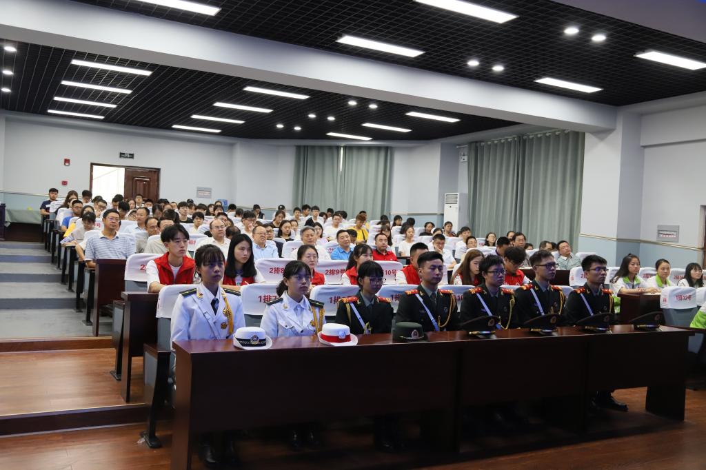 | 校领导及师生代表在主会场收看直播 |