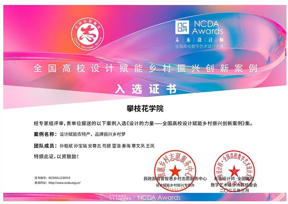 图5 全国高校设计赋能乡村振兴创新案例入选证书