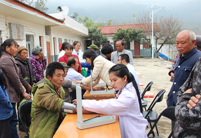 | 志愿者为村民们测量血压 |