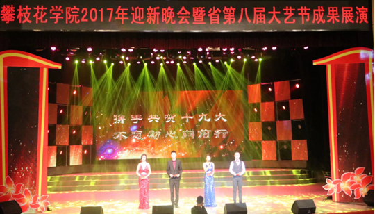 11月13日晚,我校2017年迎新晚会暨省第八届大艺节成果展演在会堂隆重举行,晚会以“携手共贺十九大,不忘初心向前行”为主题。校党委书记肖立军,党委副书记、校长王曙光等校领导,各单位相关负责人,1000余名师生代表共同观看了晚会。