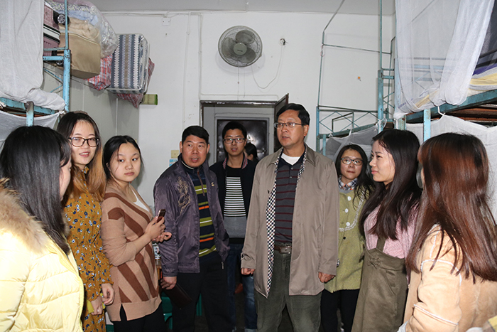 石维富一行来到玉兰苑3、4号学生公寓,向公寓的工作人员了解了寒假留宿学生的管理工作和同学们的生活、学习情况,询问了学生临时团总支为新年活动做的准备情况。石维富强调,各部门要加强管理和沟通,确保同学们的人身、财物安全,公寓内设施设备维护等服务工作要到位,为同学们营造良好的生活环境,组织留宿学生在学校度过一个祥和、有意义的春节。他还向同学们及公寓的工作人员致以节日问候。