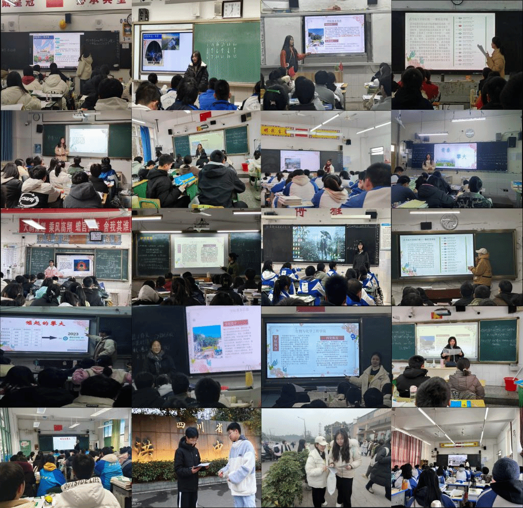 以青春之名,赴家乡之约,奋进新征程,为充分宣传学校办学特色,2024年寒假期间,生化学院(农学院)组织2023级18名学子分别前往四川成都、眉山等13个市走访17个中学,开展“我的母校我代言”招生宣传寒假专项实践活动。