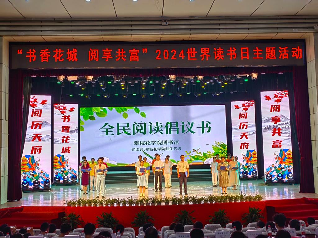 4月23日晚,攀枝花市2024年“4.23世界读书日”主题活动暨“书香花城阅享共富”启动仪式在我校会堂举行。