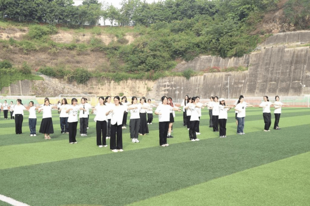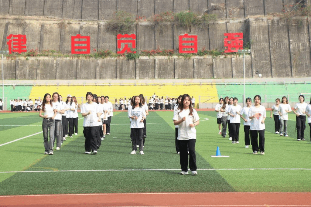 为了培养学生的音乐感知能力、协调能力和团队合作意识,丰富学生的课余文化生活,外国语学院于6月3日在本部足球场成功举办了以“争做阳光自律攀大人,韵出青春健康体育魂”为题的韵律操比赛。