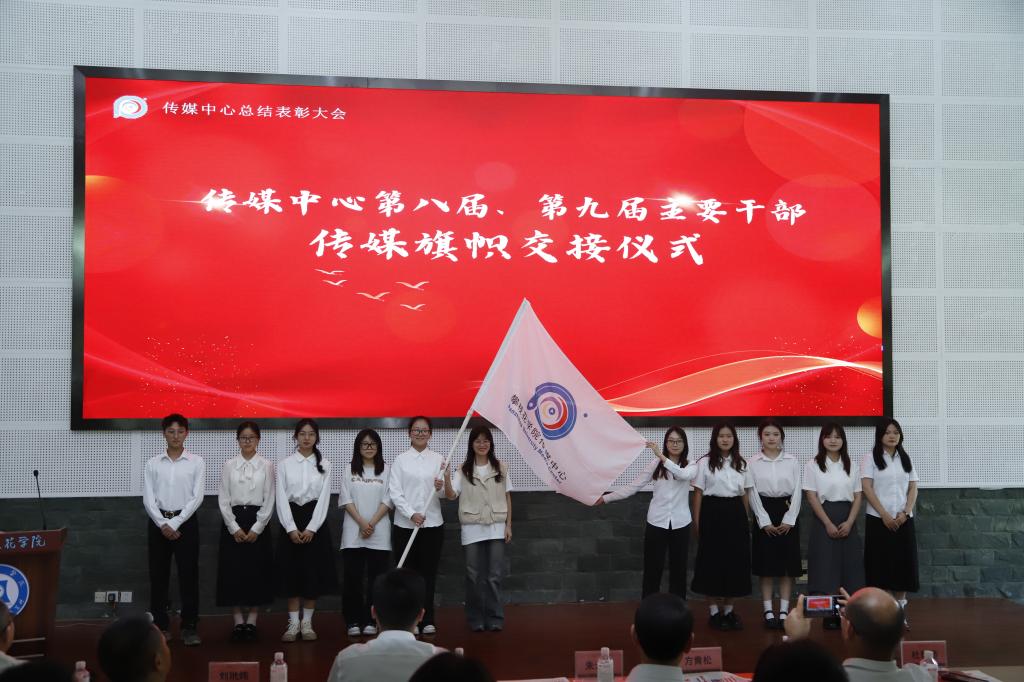 会议最后,传媒中心第八届、第九届主要干部进行了传媒旗帜交接仪式。