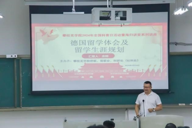 侨联主席余翔以《德国留学体会及留学生涯规划》为题,结合自身经历和感受,向同学们阐述了不同教育体系的特点和优势。进一步诠释了发掘个人兴趣,了解自身优势的重要作用和职业规划的必要性。