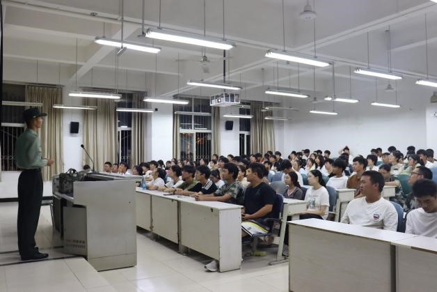 退伍学生代表刘洋、邓焰昌以《趁青春,报国去》为题,结合自身军旅经历,从训练、学习、生活等方面讲述作为一名军人该有的担当和作为。并从强健体魄、亲密战友、人生经历等十个方面为诠释了参军带给自己宝贵精神财富,鼓励广大学子积极参军报国,献身国防。