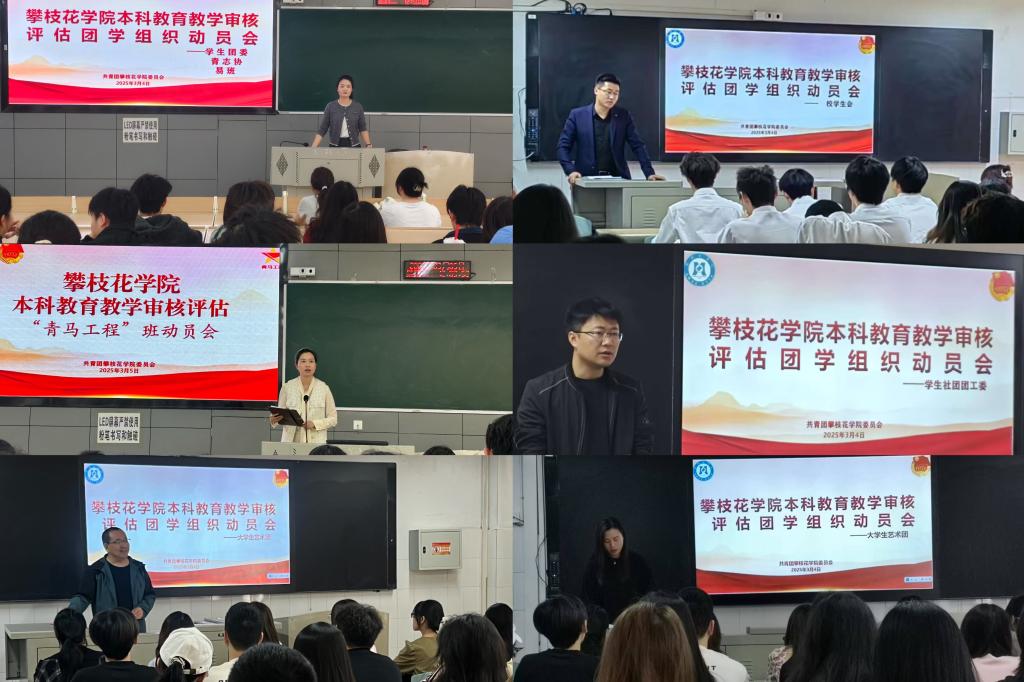 学校本科教育教学审核评估工作进入决胜攻坚阶段,为动员和号召团学干部们以更好的精神风貌、更高的学习热情、更强的集体荣誉感迎接审核评估工作,校团委于3月4日—5日在尚学楼召开了5场团学干部以评促建动员会。团委领导班子、全体老师、团学组织学生骨干、“青马工程”班学员共300余人参与。
