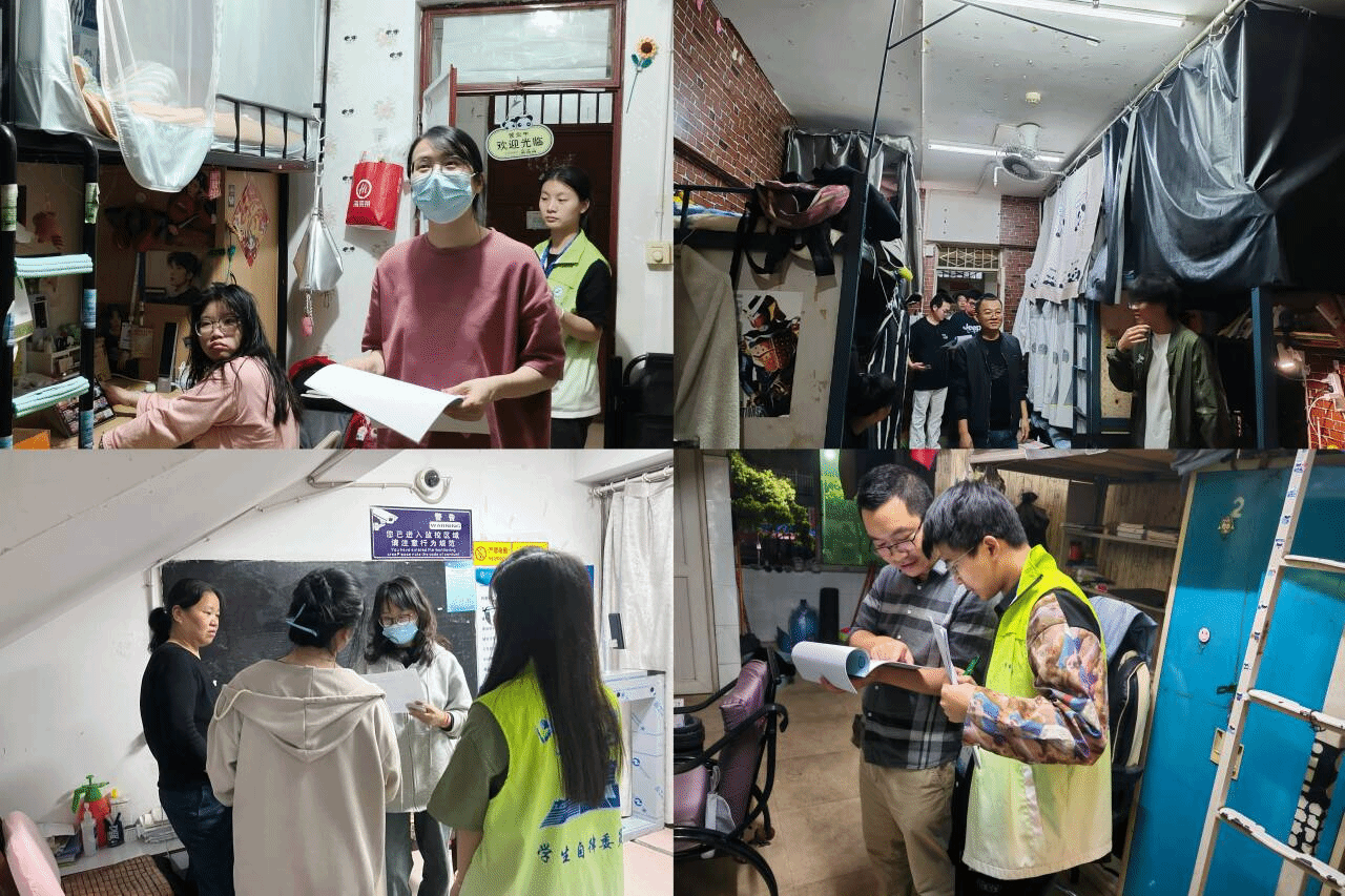 学生工作部老师和阳光文明学生委员会学生代表深入学生寝室,排查学生归寝情况和寝室中可能存在的安全隐患,提醒学生按时休息,养成良好的生活习惯,注意安全防范,自觉遵守学校规章制度和社区管理规定。
