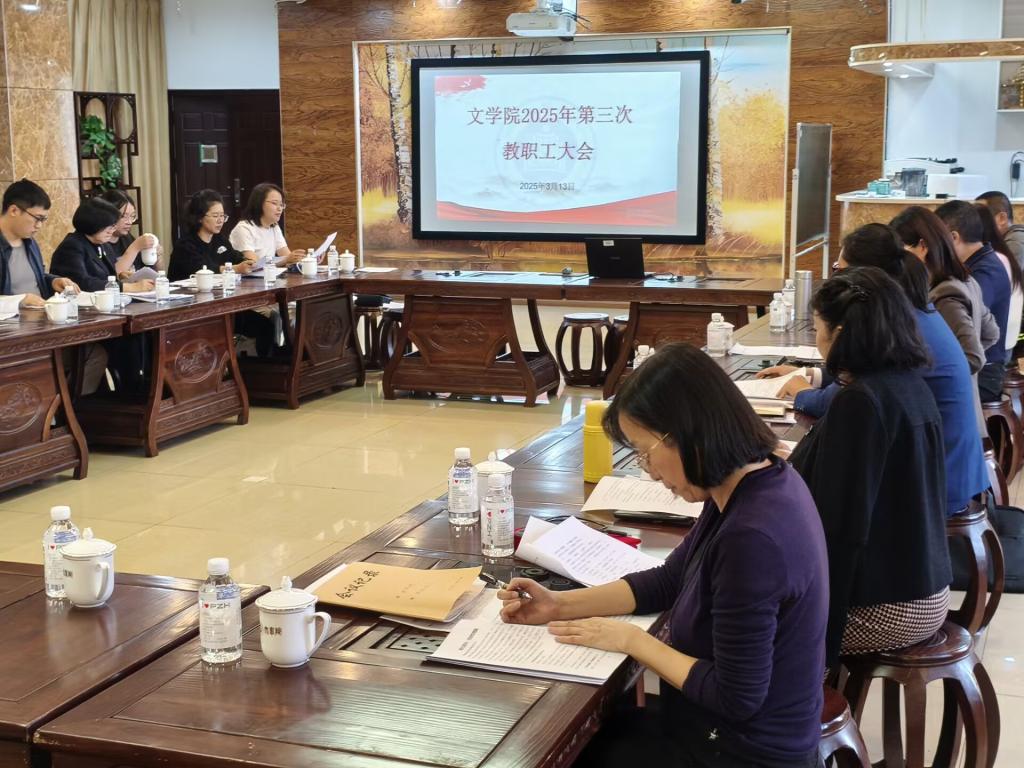 为深入贯彻落实学校本科教育教学审核评估工作要求,扎实推进本科教育教学审核评估冲刺阶段工作,3月13日下午,文学院在凌云楼茶艺室召开教育教学审核评估专项工作会。文学院全体教职工参加会议,会议由文学院党总支副书记(主持工作)汪大喹主持。