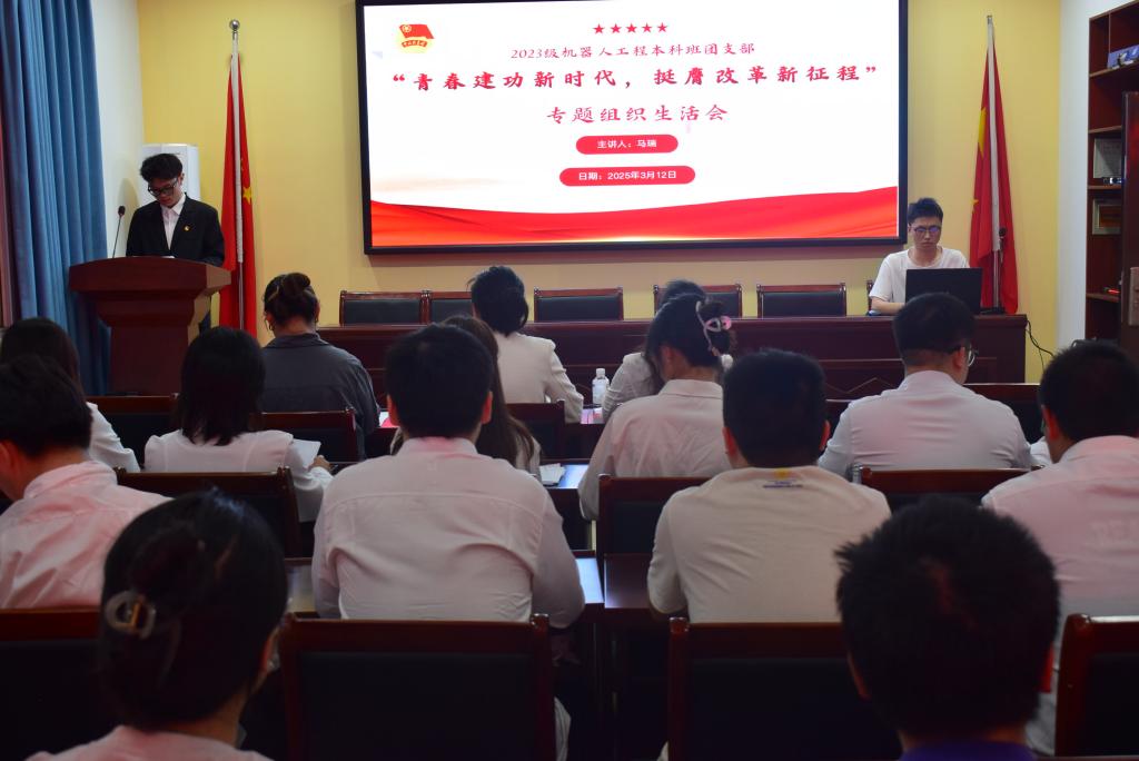 3月12日晚上2023级机器人工程本科班于砺志楼201会议室开展了“青春建功新时代,挺膺改革新征程”专题组织生活会。本次会议由2023级机器人工程本科班团支部书记马瑞主持,智能制造学院党委副书记简宇苑老师、校团委组织宣传部部长、青马工程班班主任张影莹老师、智能制造学院分团委书记马潇然老师、2023级机器人工程团支部全体团员及全院各班级团支书参加了本次会议。