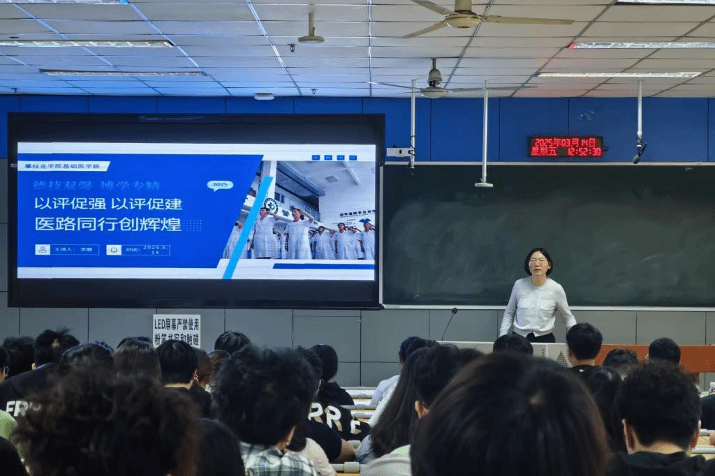 会议围绕学生群体在审核评估中的角色与任务展开。分团委书记李静作动员讲话,强调审核评估是深化教学改革、提升育人质量的关键环节。她指出,全体学生要深刻理解“以评促强、以评促建、以评促改、以评促管”的内涵,以高度的责任感和使命感落实迎评工作,从课堂纪律、学风建设、文明素养等方面展现医学院学子积极向上的精神风貌。