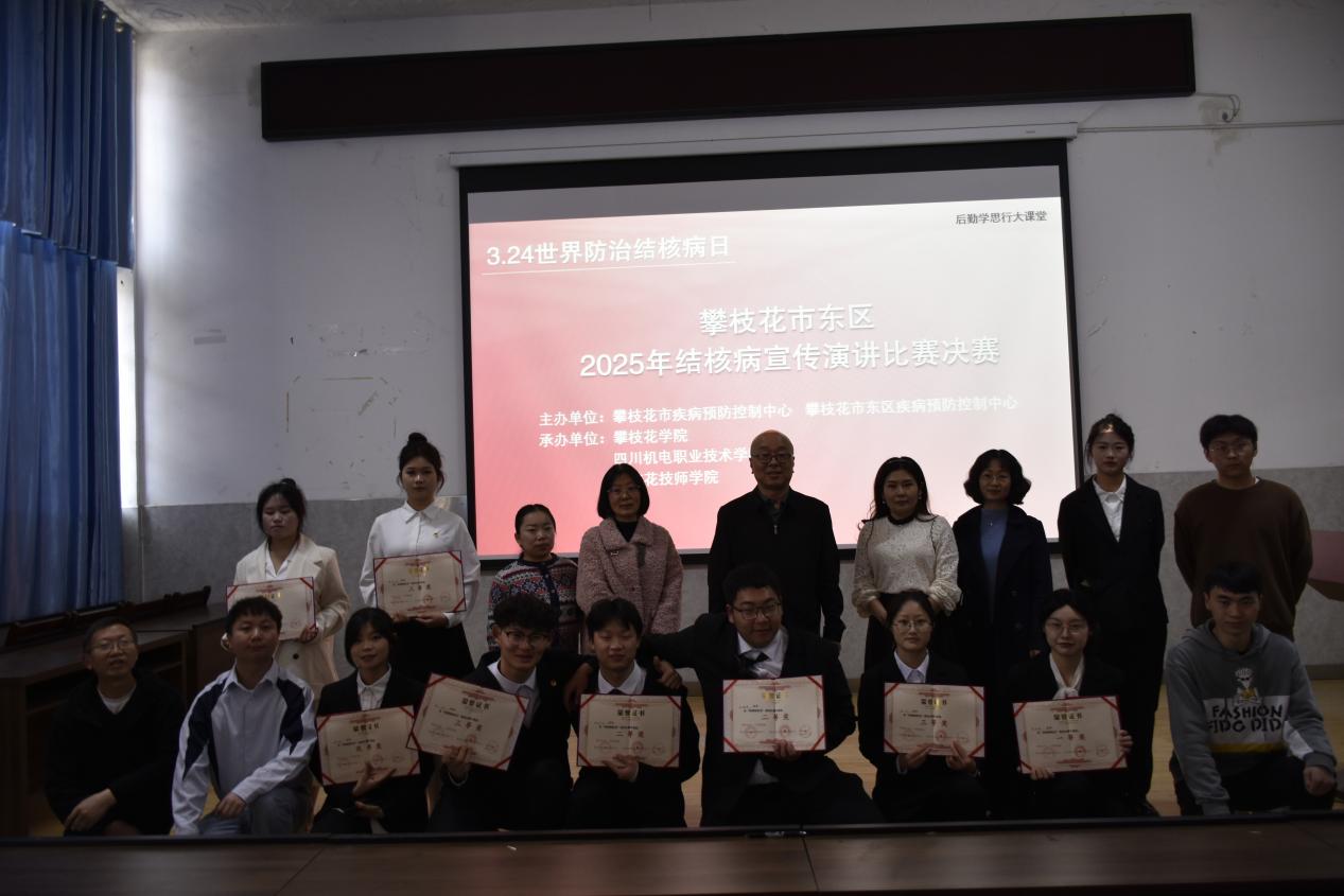 为增强全校师生对结核病、流感等校园常见传染病的防控意识,守护师生身体健康,树立师生“自己是健康第一责任人”的理念,建设阳光、健康、美丽校园。3月24日,由攀枝花市疾病预防控制中心、东区疾病预防控制中心主办,我校承办,在外国语学院多功能厅举办了“结核病防治知识演讲比赛”暨常见传染病健康讲座等相关活动。