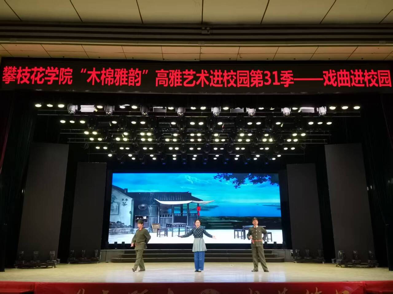 团委持续打造"木棉雅韵"文化品牌,通过引进优质艺术资源,探索美育实践育新模式。本场演出既是贯彻落实中华优秀传统文化传承发展工程的生动实践,更是攀枝花学院服务“共同富裕试验区”建设的创新探索。通过戏曲艺术与青春校园的对话,为攀枝花物质文明与精神文明协调发展注入青春动能,让“共富共美”的城市发展愿景在文化薪火中照进现实,为培育新时代文化自信注入源头活水。