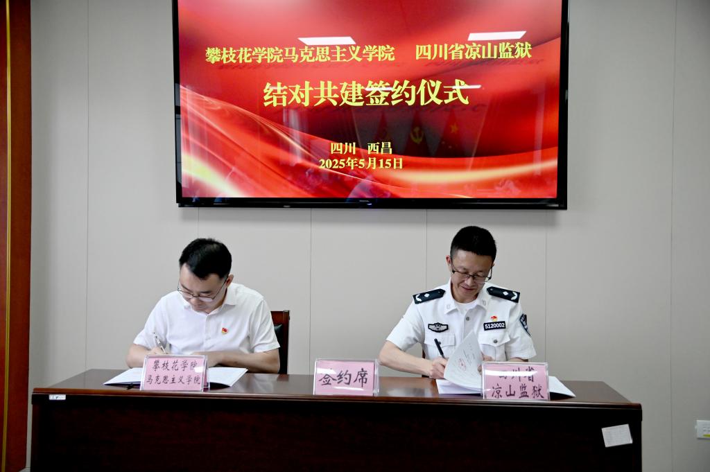 5月15日双方在四川省凉山监狱举行结对共建协议签约仪式。签约仪式前,狱校双方围绕单位基本情况、队伍思想政治建设、党组织建设及未来合作发展方向等进行了深入的座谈交流,随后,双方签订共建协议,学院现场授予四川省凉山监狱“攀枝花学院马克思主义学院理论教学辅导站”牌匾。签约仪式后,学院领导班子、两委委员深入监管区开展实地调研交流,参观罪犯“三大改造”现场,与凉山监狱八监区党支部针对党建创新经验进行交流并进行廉洁警示教育。