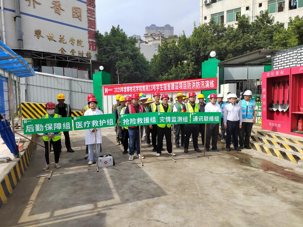 为切实提升校园在建工程防洪防汛应急能力,筑牢校园安全防线,结合目前攀枝花气候条件,5月30日上午,我校在钒钛产业产教融合实训基地、13号学生宿舍两大在建工程项目施工现场开展防洪防汛应急演练。后管处项目管理团队、基本建设党员先锋队,两个在建工程项目施工单位、监理单位60余人参加演练。