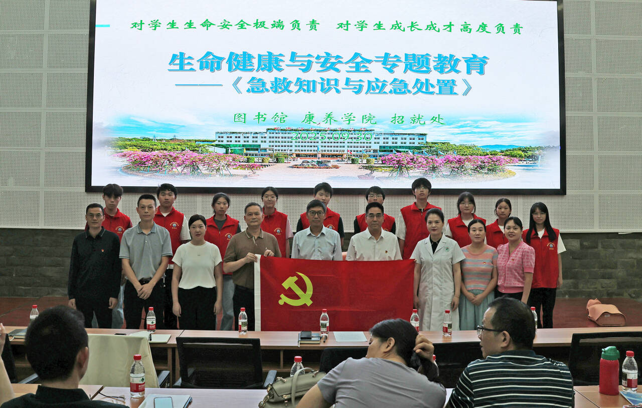9月30日上午,图书馆党支部联合康养学院教工支部、招就处支部在博雅厅举办了《生命健康与安全专题教育——急救知识与应急处置》专题讲座。图书馆、康养学院、招就处教师,图书馆“阅读悦心”志愿服务站大学生志愿者和校史馆讲解团学生近百人聆听了讲座。讲座由康养学院专业的医护团队主讲,图书馆馆长王欢主持。