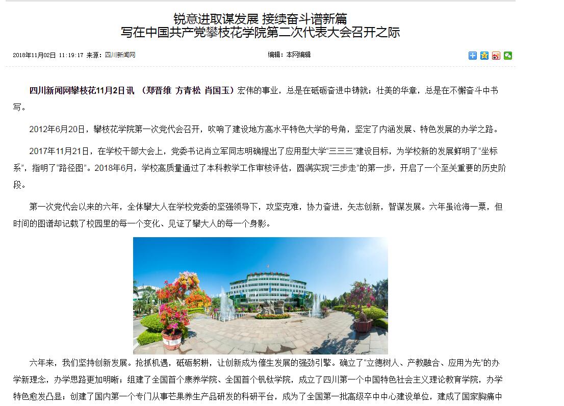 人民网、教育导报、中国高校之窗、四川新闻网、攀枝花日报、攀枝花电视台等多家媒体纷纷对我校第二次党代会召开的盛况进行了报道。