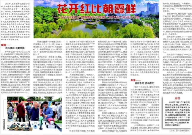 教育导报:10月30日以《花开红比朝霞艳》为题写在我校第二次党代会召开之际;11月6日,以《阳光洒满新征程》为题描绘了我校未来五年发展蓝图。